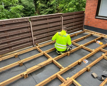 Rakennamme ja remontoimme terassit, parvekkeet ja julkisivut, sekä parannamme rakennusten lämmöneristystä kattojen, seinien ja lattioiden osalta.