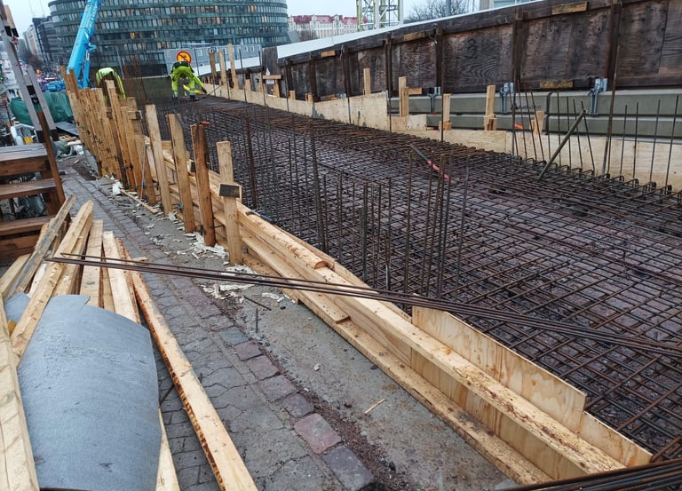 elementtiasennukset ja raudoitukset sekä betoni- ja muottityöt